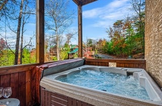 After winning the trout tournament in the Smokies, dancing to bluegrass beats in town, or taking a scenic helicopter ride, unwind in the inviting outdoor spaces at your Pigeon Forge cabin. Unwind in the hot tub beneath twinking stars, dine at the picnic table with treetop views on the open deck, or sip coffee or cocktails in the rockers on the covered porch. There’s also a gas grill for Smoky Mountain cookouts!